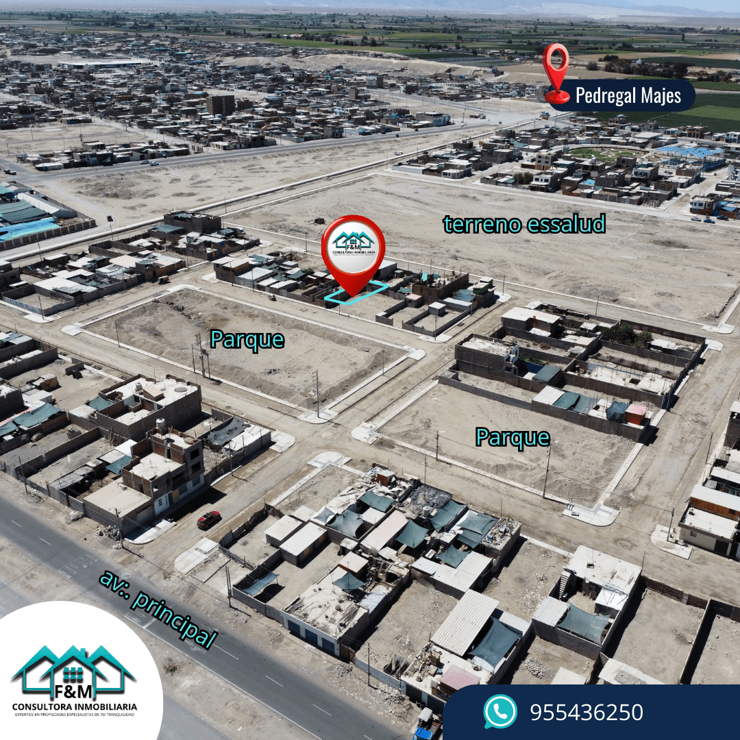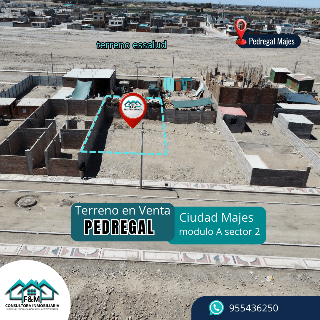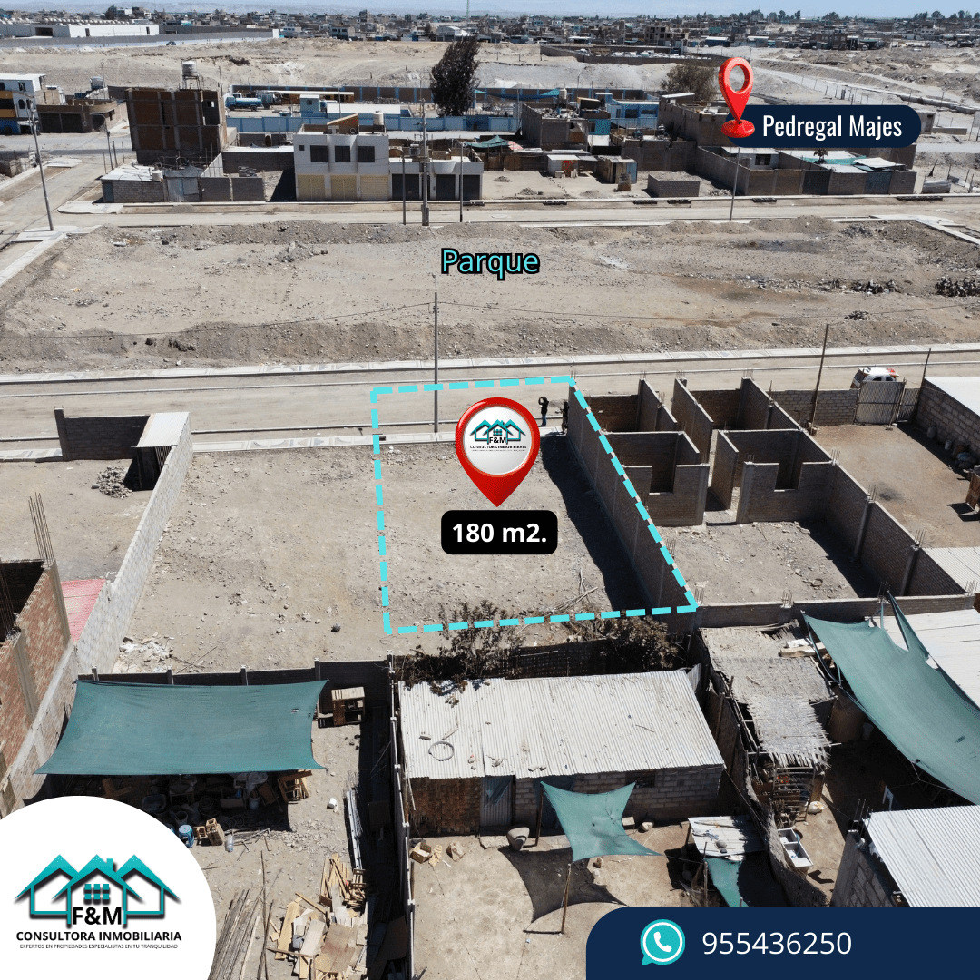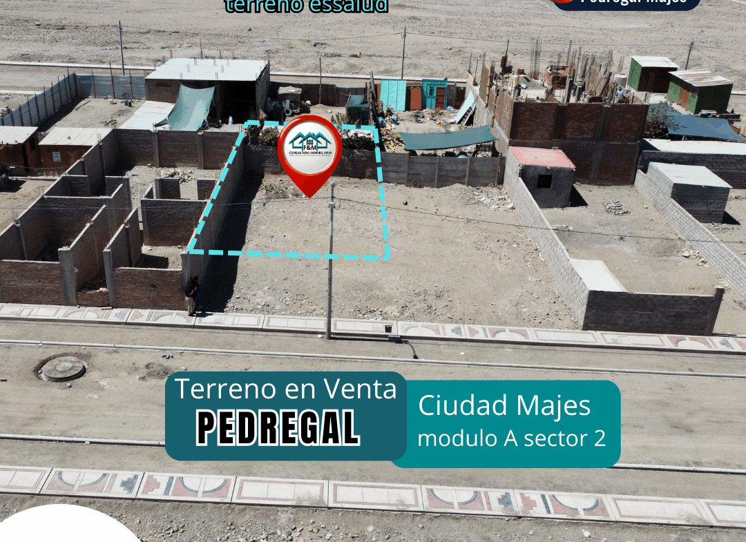 terreno ubicado en ciudad majes modulo A sector 2 pedregal Majes Arequipa, a 3 minutos del terminal terrestre, a espaldas de los terrenos de essalud, cerca a la universidad san agustin , cerca a avenidas principales, en la actualidad se estan realizando obras de asfaltado y construccion de veredas, lugar en crecimiento donde púede invertir tu dinero o tambien paar tu vivienda, area 180 m2. cuenta con todo los servicios basicos, documentos en regla. el percio es tratable.